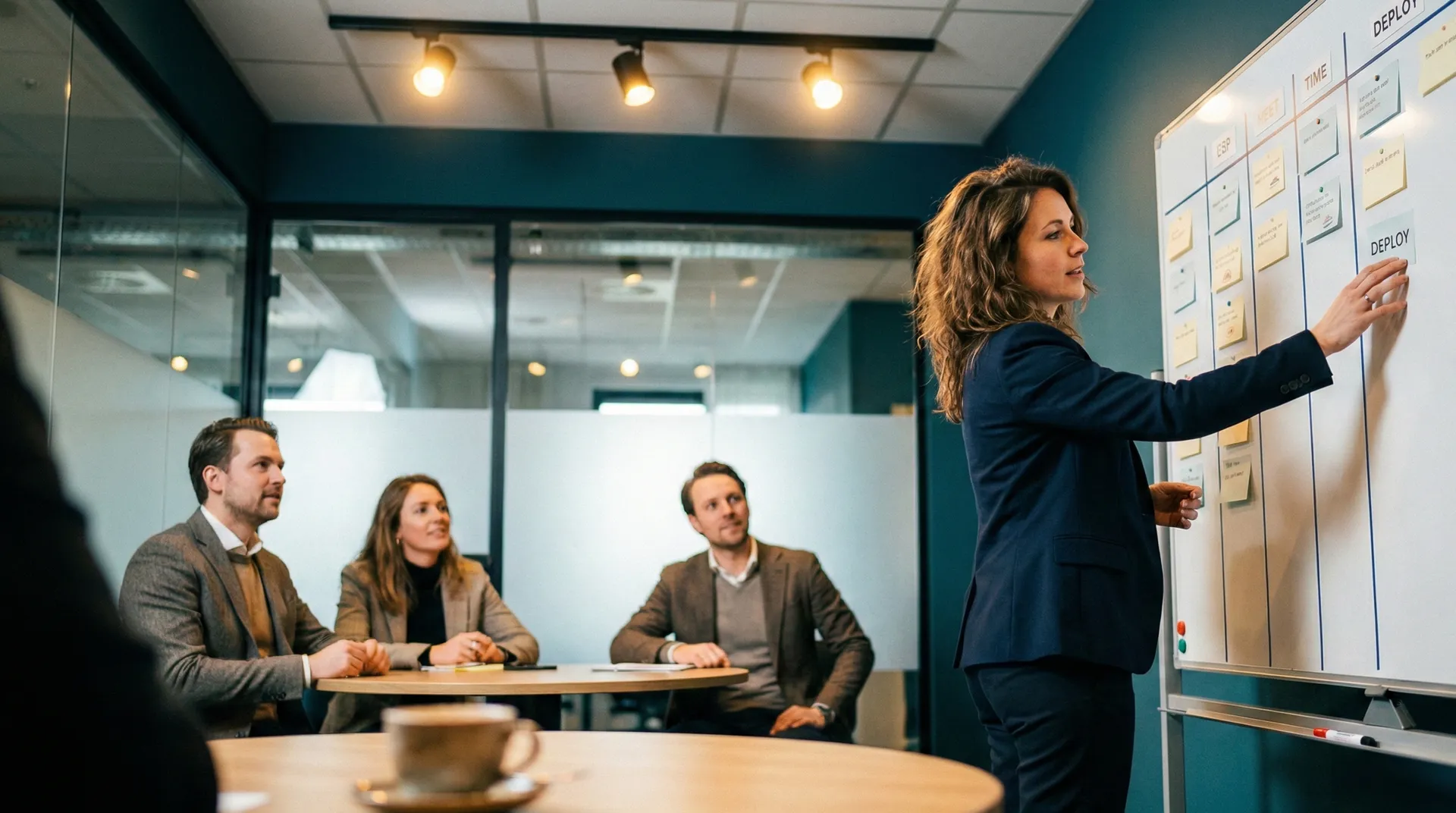 Demi-journée ou journée complète avec votre comité de direction. Exercices interactifs, délibération structurée, cadre décisionnel appliqué à votre réalité.